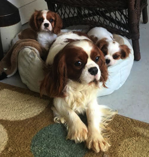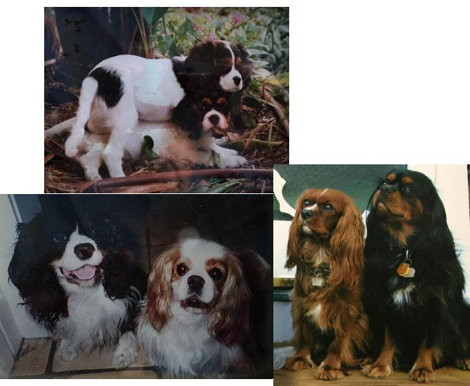 I got my first Cochran cavalier in 1987, Belle, (Blenheim female). Four months later I got her cousin, Boo, (Tricolor female). In 2007 I got Lily and Lucy, (Tricolor female litter mates). I thought I would always get females. At one point none were available. I am now hooked on the males! In September, we are picking up (chocolate/tan) male litter mates.