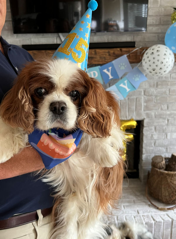 Buddy turned 15 yesterday on September 10, born the day before 9/11. He comes to work with me every day as a therapy dog and brings joy to many people.